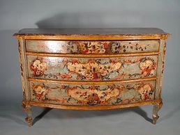 We consolidated the surface of this beautiful painted chest just in time to prevent wholesale losses of garland and flower scenes.